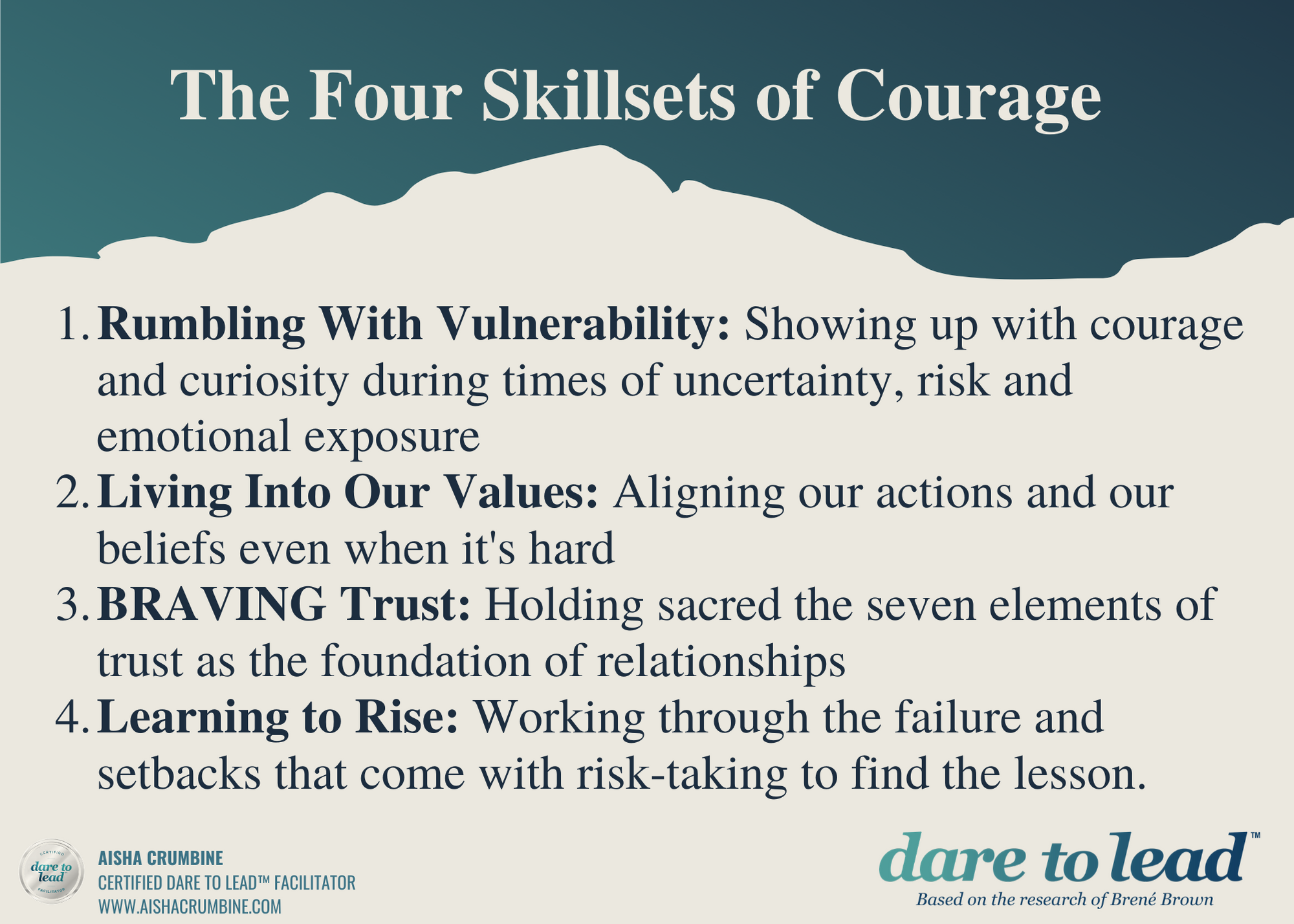 Based on that finding, Brown designed an empirically based program around the four teachable, observable, and measurable skillsets of courage. Having a roadmap for creating courage means we have what we need to help people get rid of their armor so they are free to ask questions, try new things, and risk being wrong on the way to getting it right. In the world of education, where we like formulas and predictable inputs and outputs, this is revolutionary.